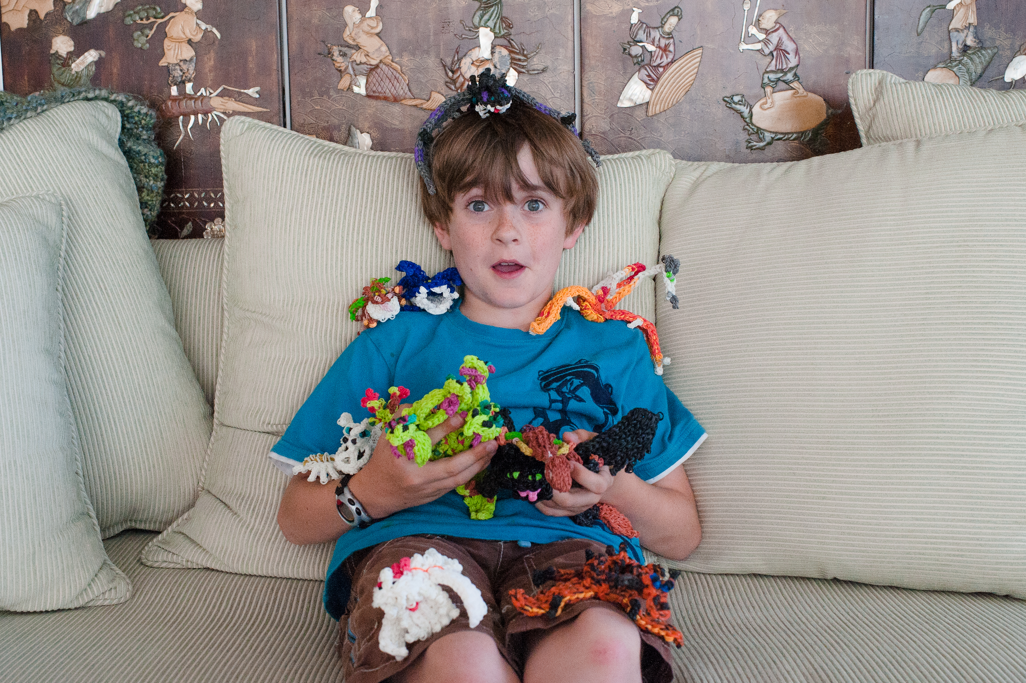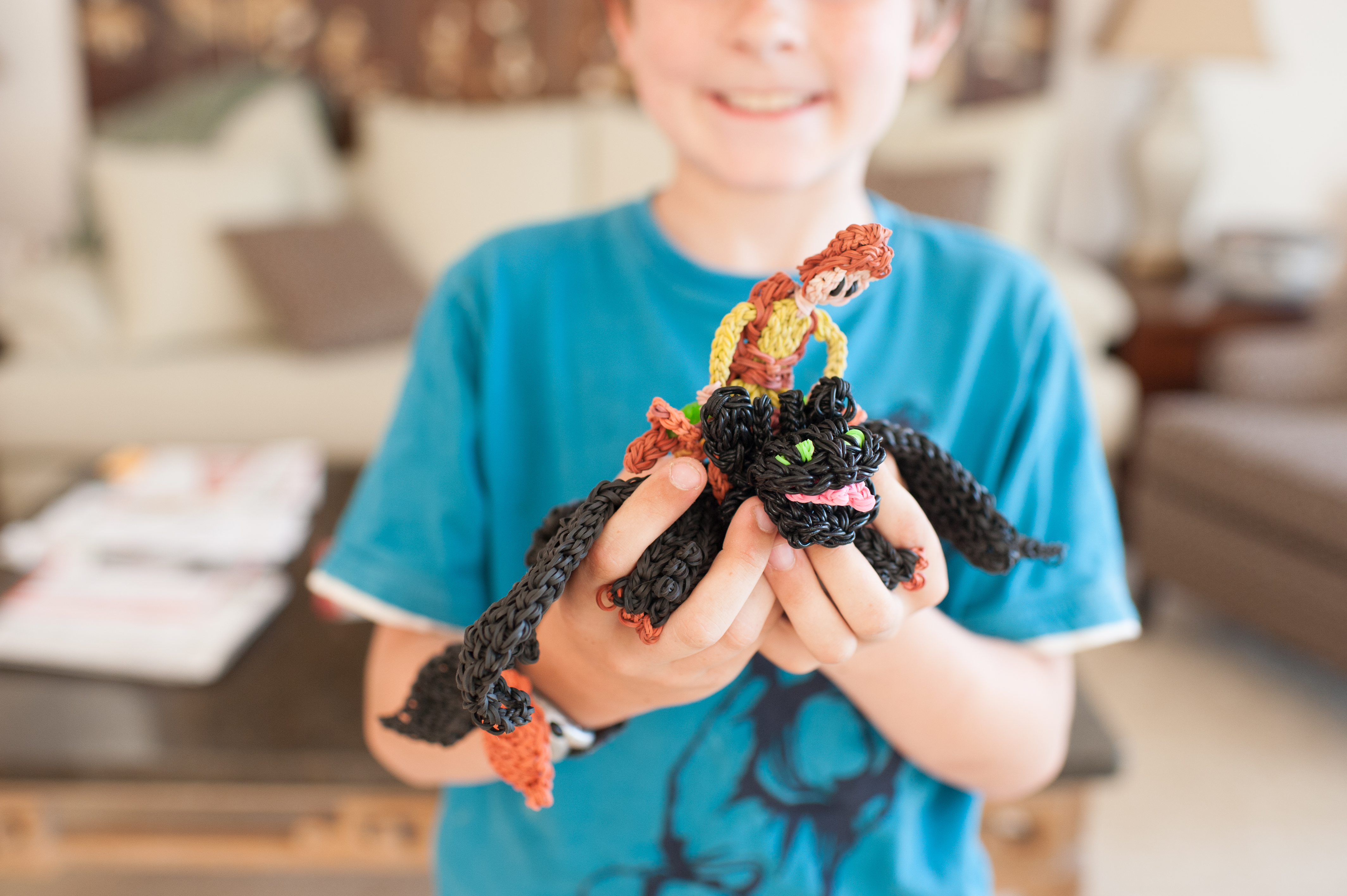 On a journey with a bucket full of Rainbow Loom dragons.